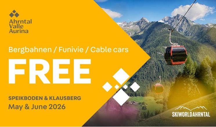 Freie Auffahrt mit den Bergbahnen im Ahrntal - im Mai und Juni 2026